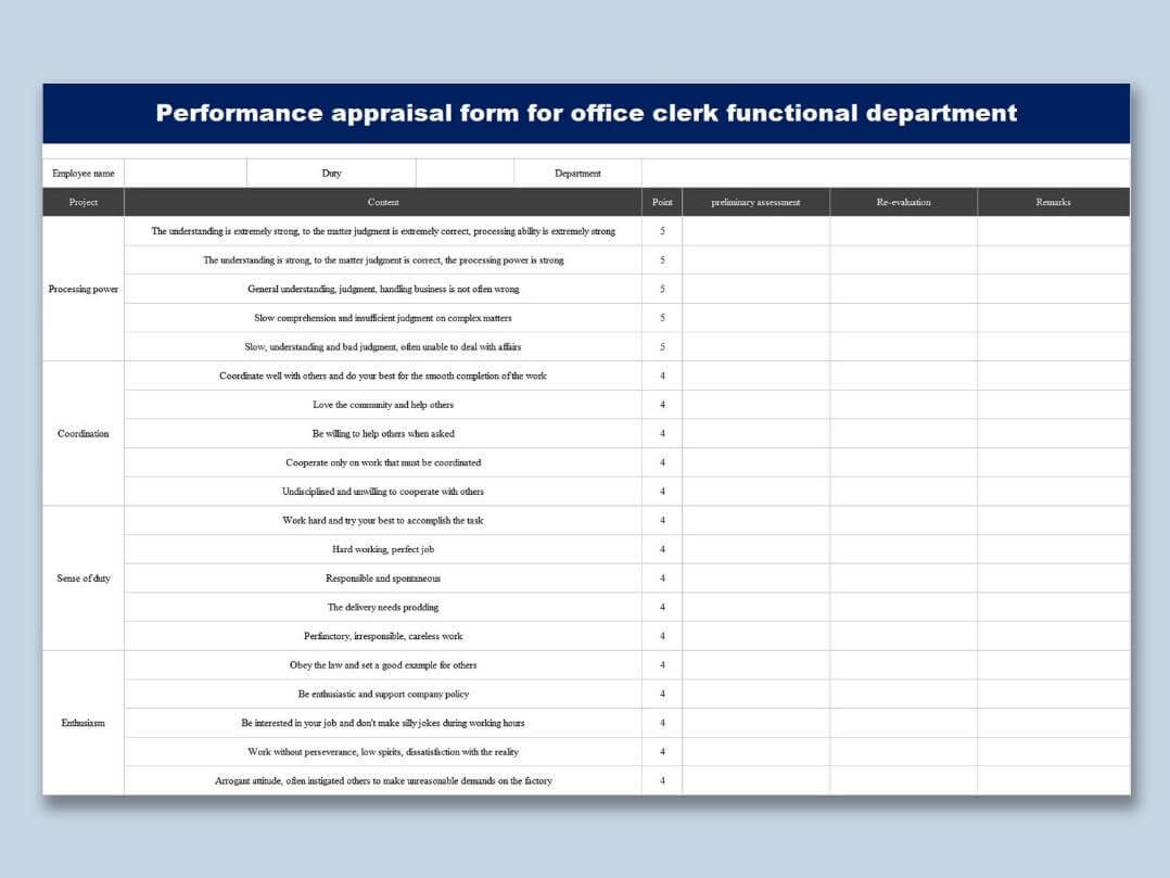 No ignore esta plantilla gratuita descargable de formulario de evaluación de empleados en formato Word que le otorga un puesto a cada empleado. Puede que la plantilla le parezca atractiva porque pondera el trabajo de la persona en el área de oficina y mantenimiento, entre otros lugares de su trabajo.