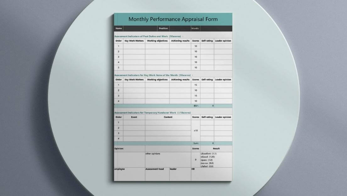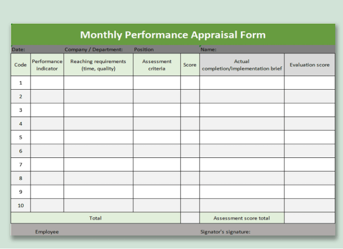 La lista de las plantillas de formularios de evaluación de empleados para descargar gratis no está completa sin la que le ofrece un rendimiento mensual, pero en una nueva versión. En este caso, la plantilla de evaluación analizará el rendimiento mensual del trabajador y le permitirá añadir notas.