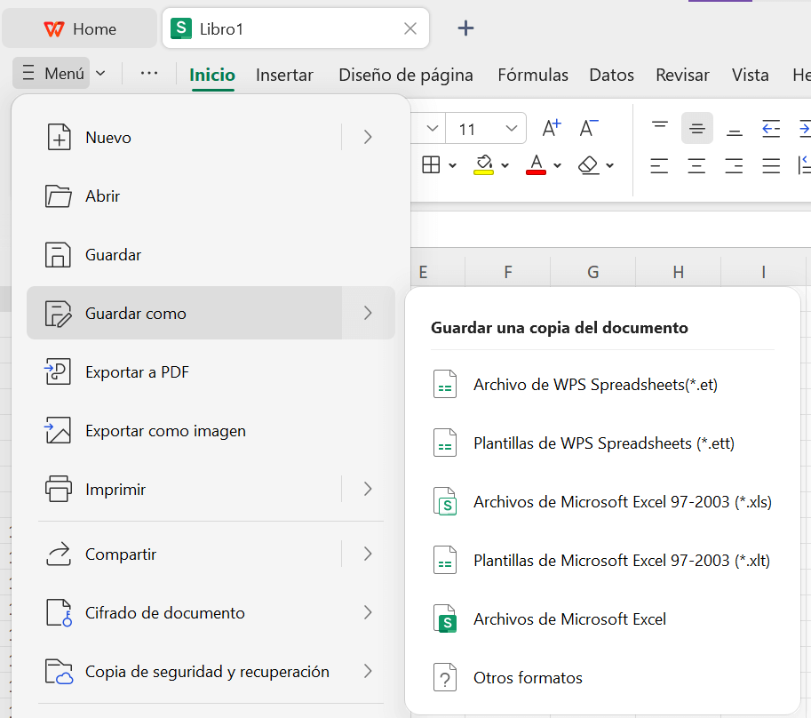 Paso 1: Haz clic en el botón de Menú en la esquina superior izquierda. Selecciona "Guardar como" en el menú. Esto te permitirá elegir el tipo de archivo al que deseas convertir.