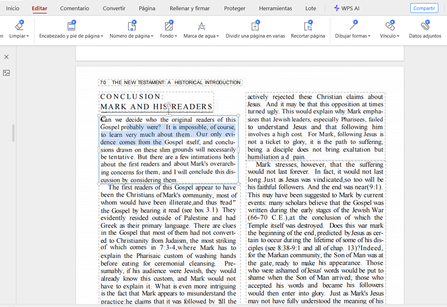 Existe entonces una instancia intermedia que debemos llevar a cabo: el escaneo OCR. Esta herramienta se encarga de reconocer de forma óptica los caracteres de un texto y convertirlos a un formato digital que no solo es legible por parte del editor PDF, sino que además podremos editar a nuestra conveniencia. Esto no pueden hacerlo todas las aplicaciones de lectura de PDF, pero sí que vas a poder lograrlo con WPS Office.