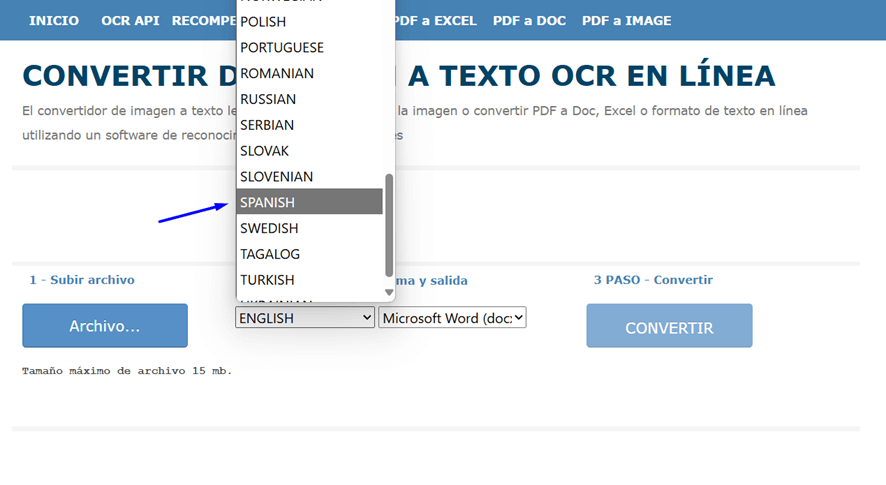 2. A continuación, elige el idioma del documento que quieres escanear. Si se trata de un documento en español, elige ‘Spanish’.