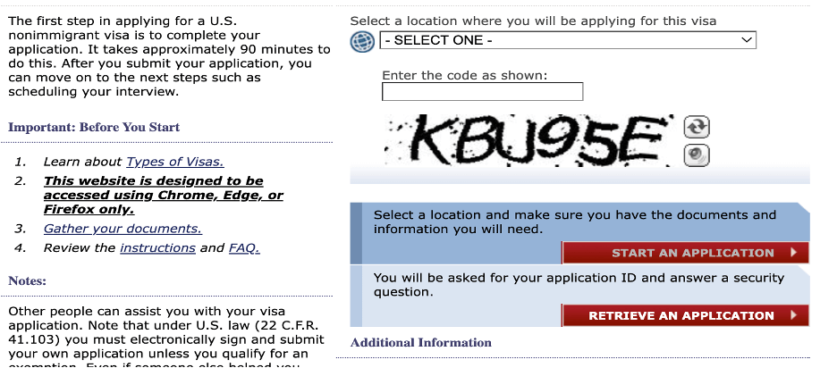 1. ¿Por qué tengo problemas para acceder al Formulario DS-160?