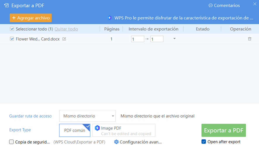 Conversión a PDF con WPS Office