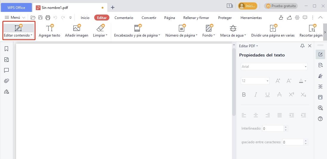 Abrir archivos PDF en WPS Office: Abre WPS Office PDF Editor y abre el archivo PDF en el que quieres escribir. Haz clic en el botón "Editar" para entrar en el modo de edición.