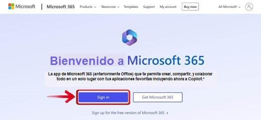 Paso 1: Visite el sitio web de Microsoft y cree una cuenta de Microsoft 365 o inicie sesión en la que ya posee.