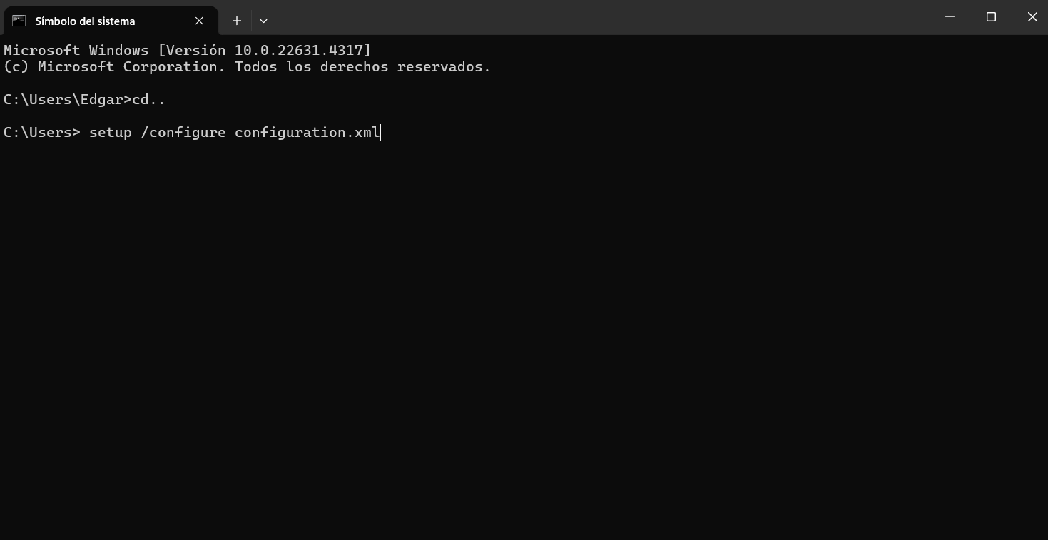3. Escribe el comando setup /configure configuration.xml