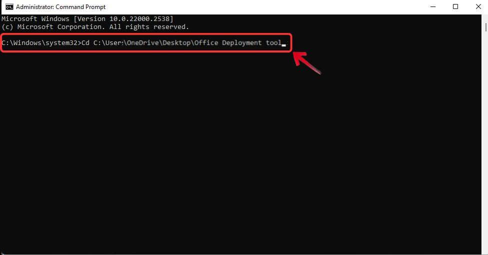 Paso 4: Ahora, para comenzar la instalación, introduzca el siguiente comando: setup.exe /configurar configuración.xml