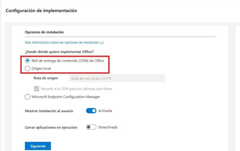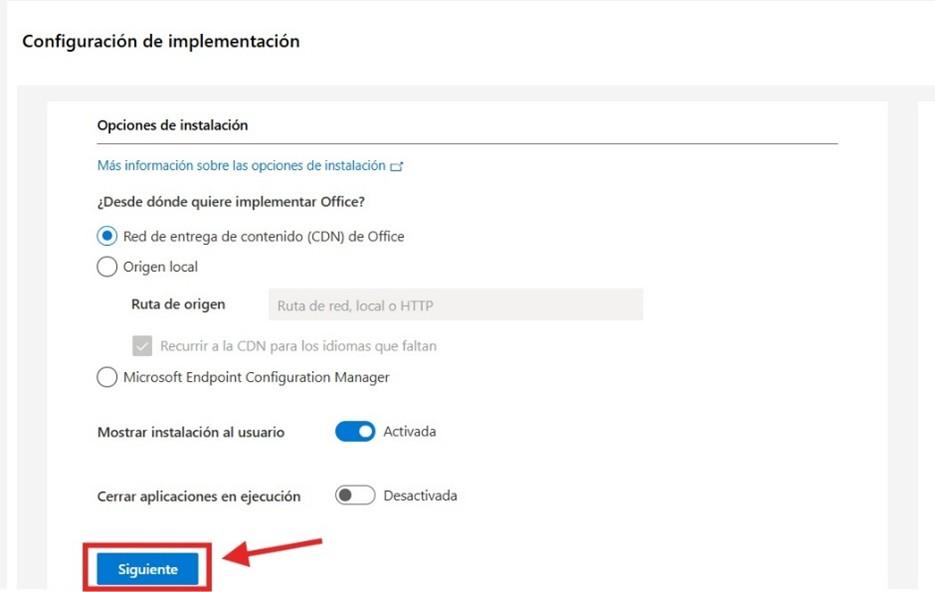 Ahora, los archivos de implementación de Office están listos en la carpeta seleccionada y puede continuar.