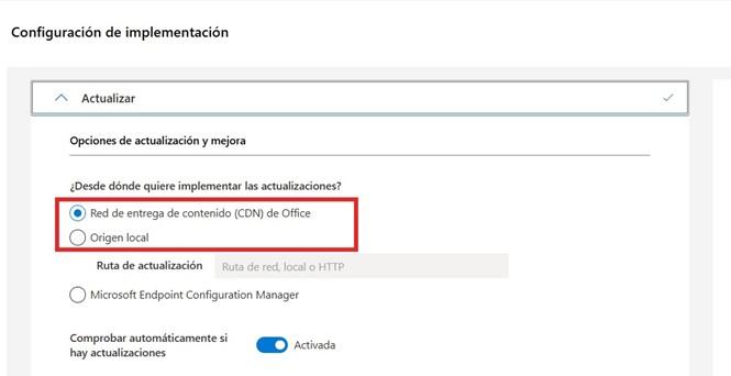 Configuración predeterminada del canal de actualización en la implementación de Office