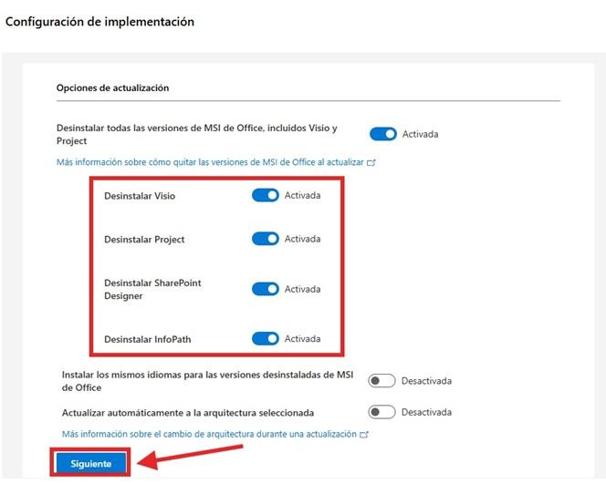 Paso 14: En el campo Actualizaciones, decida si desea desinstalar las versiones existentes de Office. Una vez hecho esto, haga clic en Siguiente.