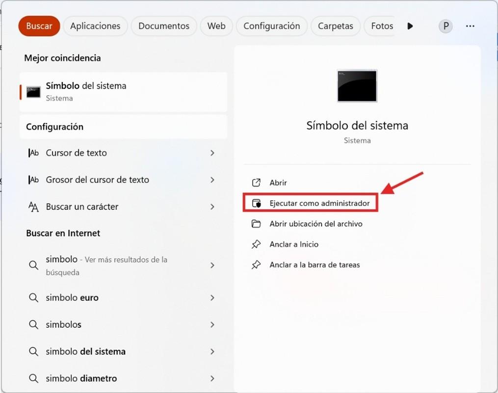 Paso 1: Abra la barra de búsqueda de la barra de tareas, escriba “Símbolo del sistema” y haga clic en “Ejecutar como administrador”.