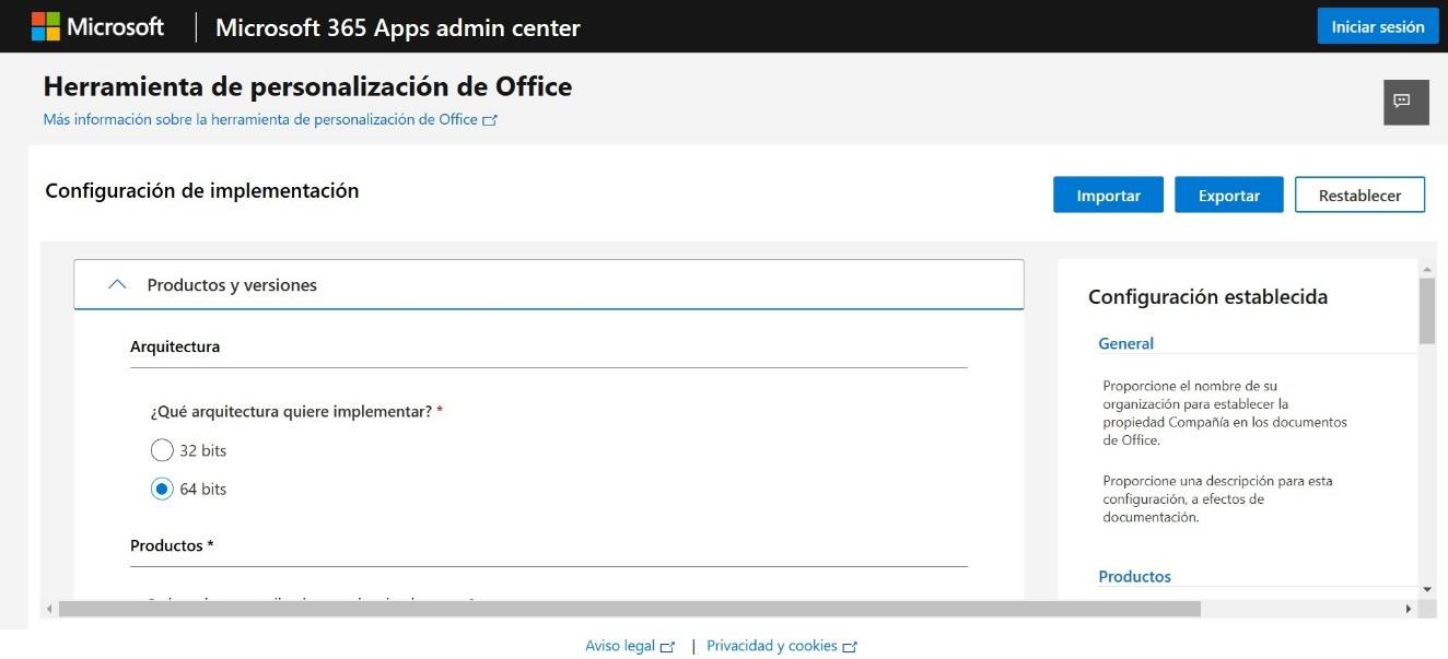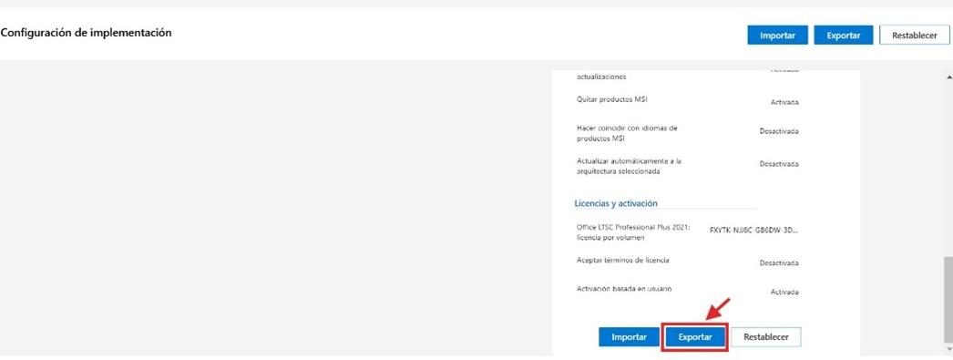 Exportar el archivo de configuración en la configuración de implementación de Office