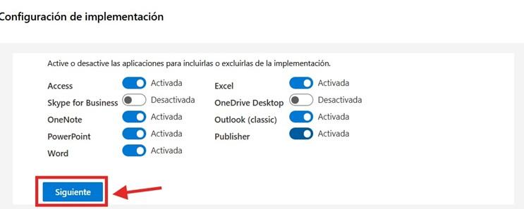 Paso 7: Seleccione las aplicaciones de Office que desea incluir. Usted puede activar o desactivar las aplicaciones utilizando los interruptores de selección.
