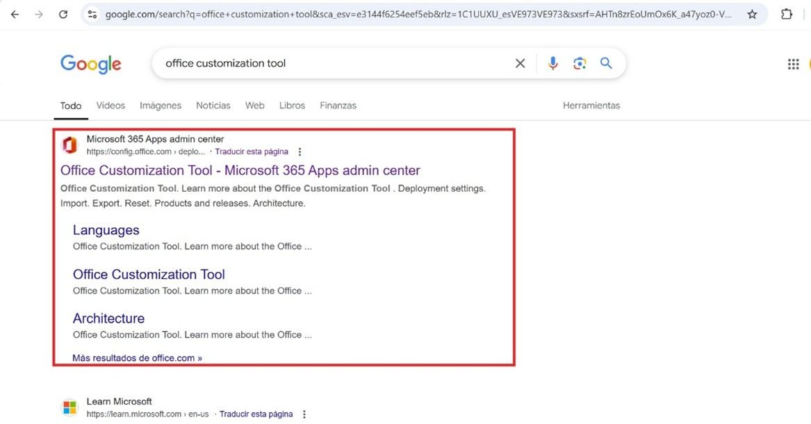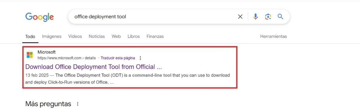 Paso 1: Abra su navegador y busque “Office Deployment Tool”.