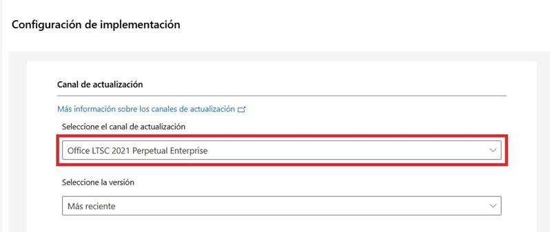 Selección de Office LTSC Professional Plus 2021 en los ajustes de configuración