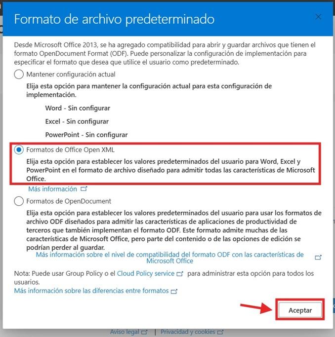 Paso 21: En el cuadro de diálogo Exportar, seleccione la opción Formatos Open XML de Office como tipo de archivo y haga clic en “Aceptar”.