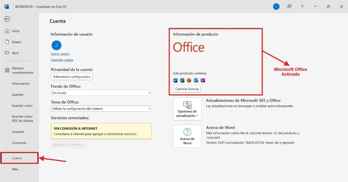 Una vez instalado, vamos a comprobar si Office está correctamente activado y listo para usar.