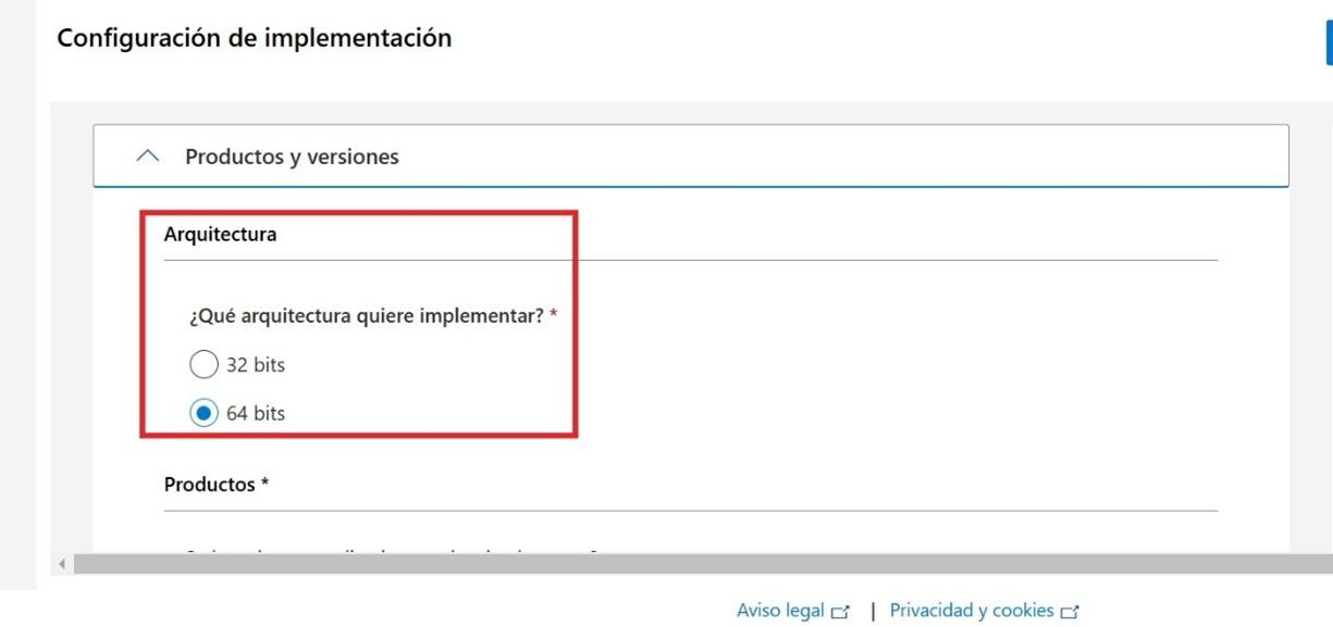 La primera sección, denominada Productos y versiones, permite personalizar los campos como la arquitectura, los productos, los canales de actualización y las aplicaciones. Revisemos cada campo en detalle: