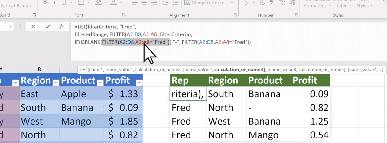 La nueva función LET asigna nombres a los resultados de los cálculos, lo que le permite almacenar cálculos intermedios y definir nombres dentro de una fórmula.