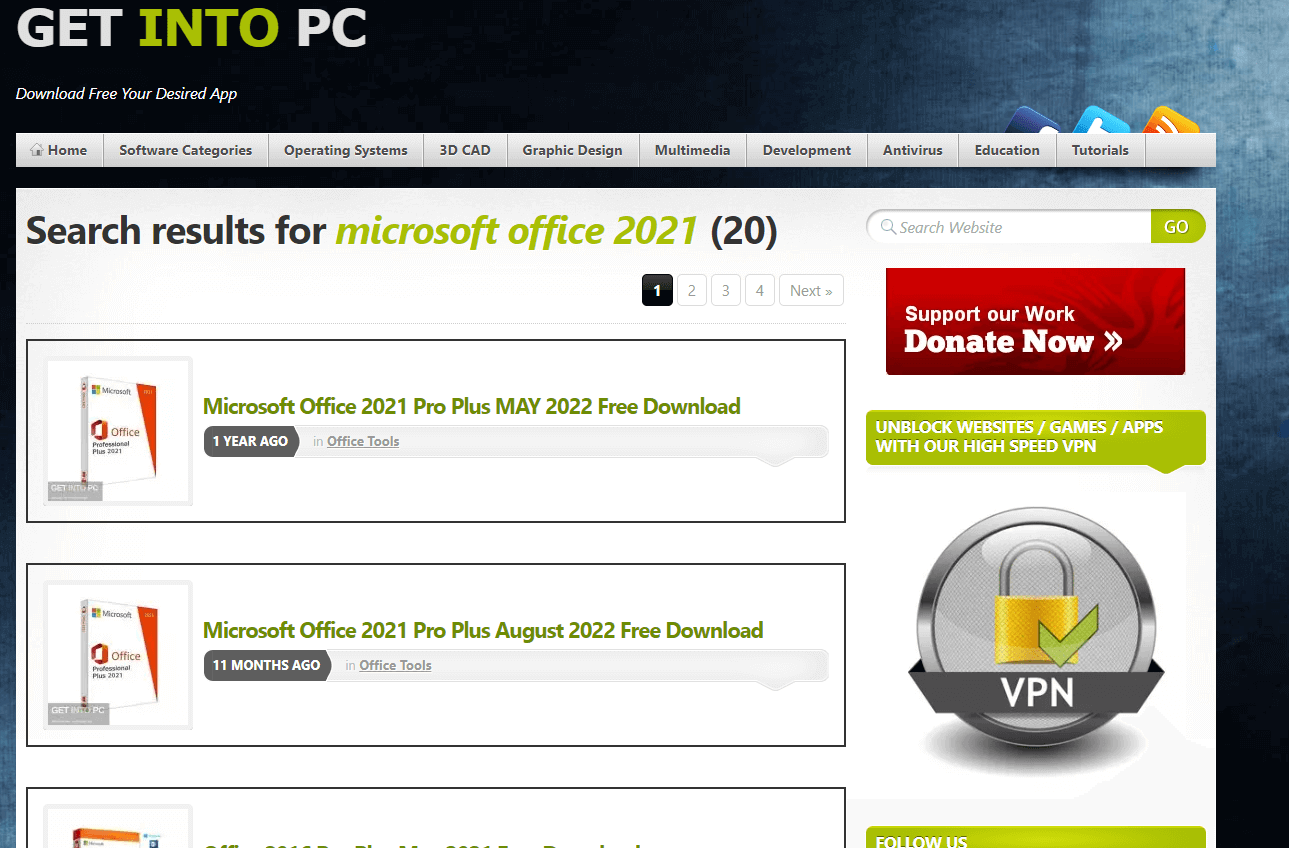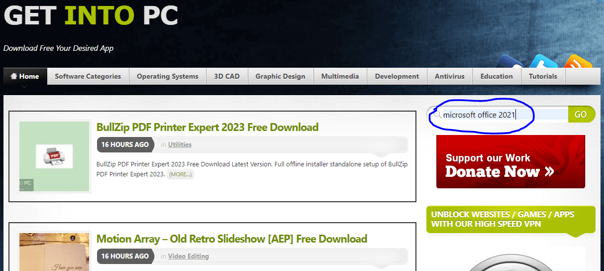 Sin embargo, muchos sitios web ofrecen la descarga gratuita de Microsoft Office 2021, pero las descargas suelen estar desactualizadas e infectadas con malware. Por eso, hemos seleccionado el sitio web "Get Into PC" para la descarga.